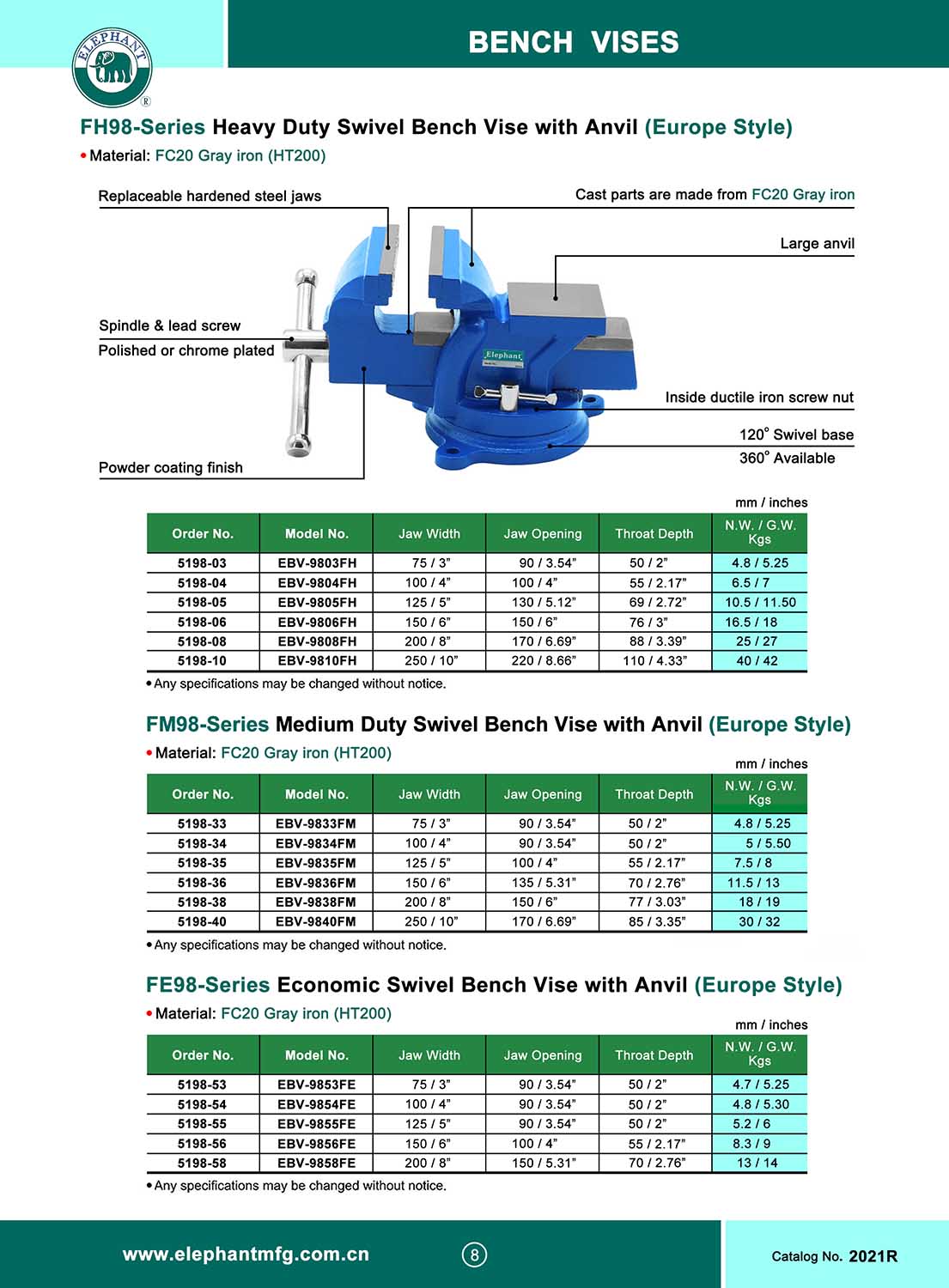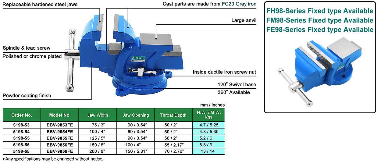 FE98-Series ECONOMIC SWIVEL BENCH VISE WITH ANVIL (EUROPE STYLE)