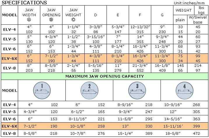 • Hardened spherical segment eliminates movable jaw tilt. Each pound of force horizontally produces one-half pound of force vertically.