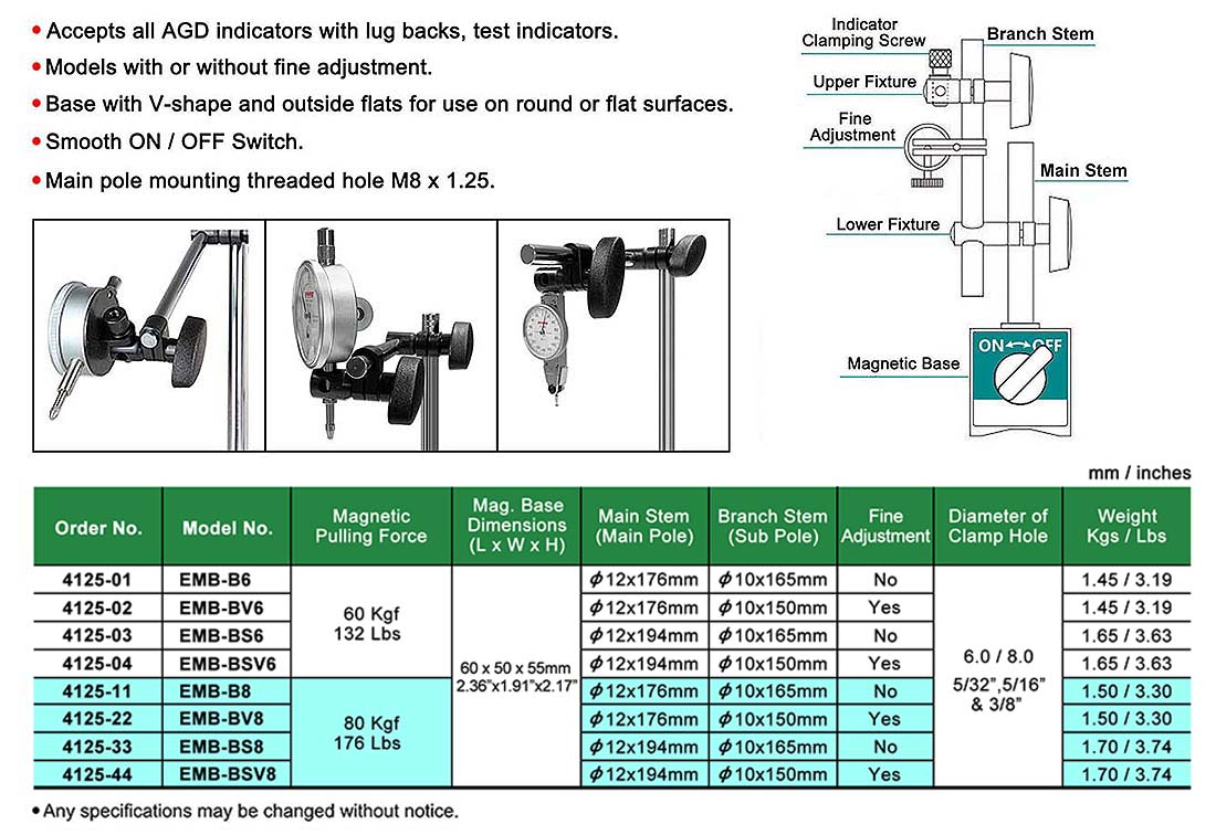 Basic-type MAGNETIC BASE INDICATOR HOLDERS W/Fine Adj.