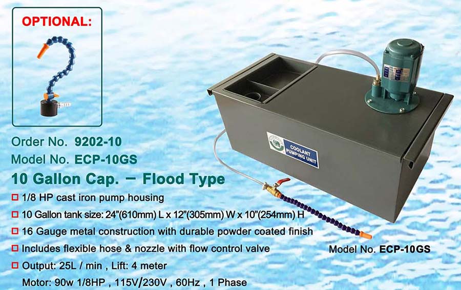 COOLANT PUMP AND TANK 10Gallon Cap.-Flood Type