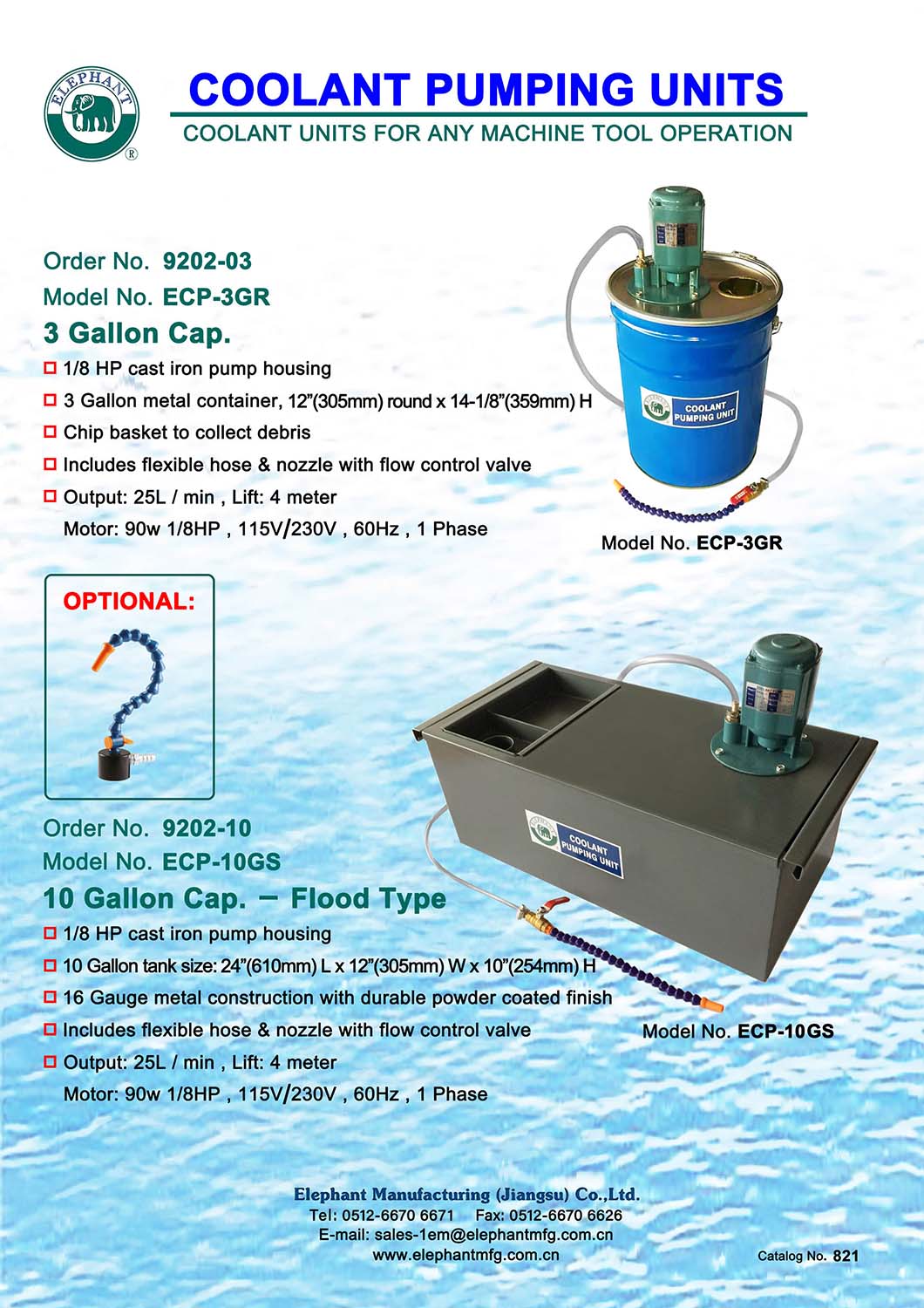 COOLANT PUMP AND TANK 3Gallon Cap.