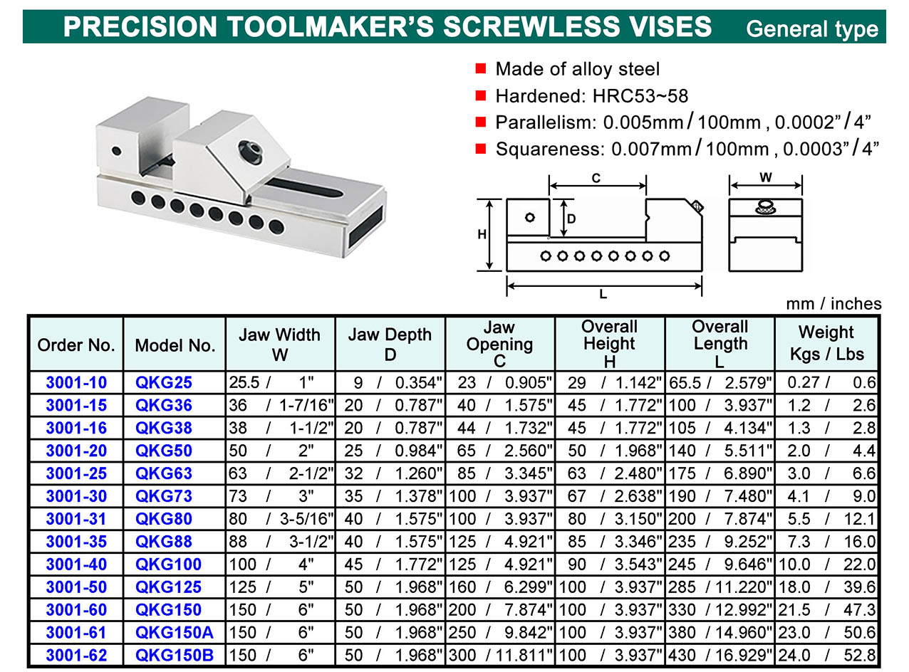 PRECISION TOOLMAKERS SCREWLESS VISES