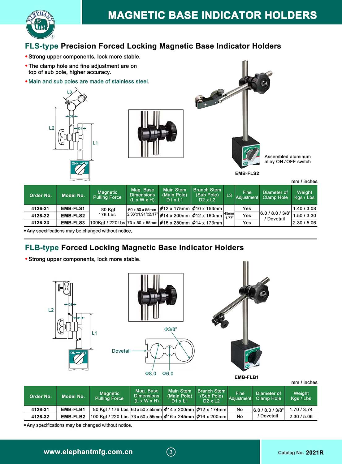 FLB-type FORCED LOCKING MAGNETIC BASE INDICATOR HOLDERS