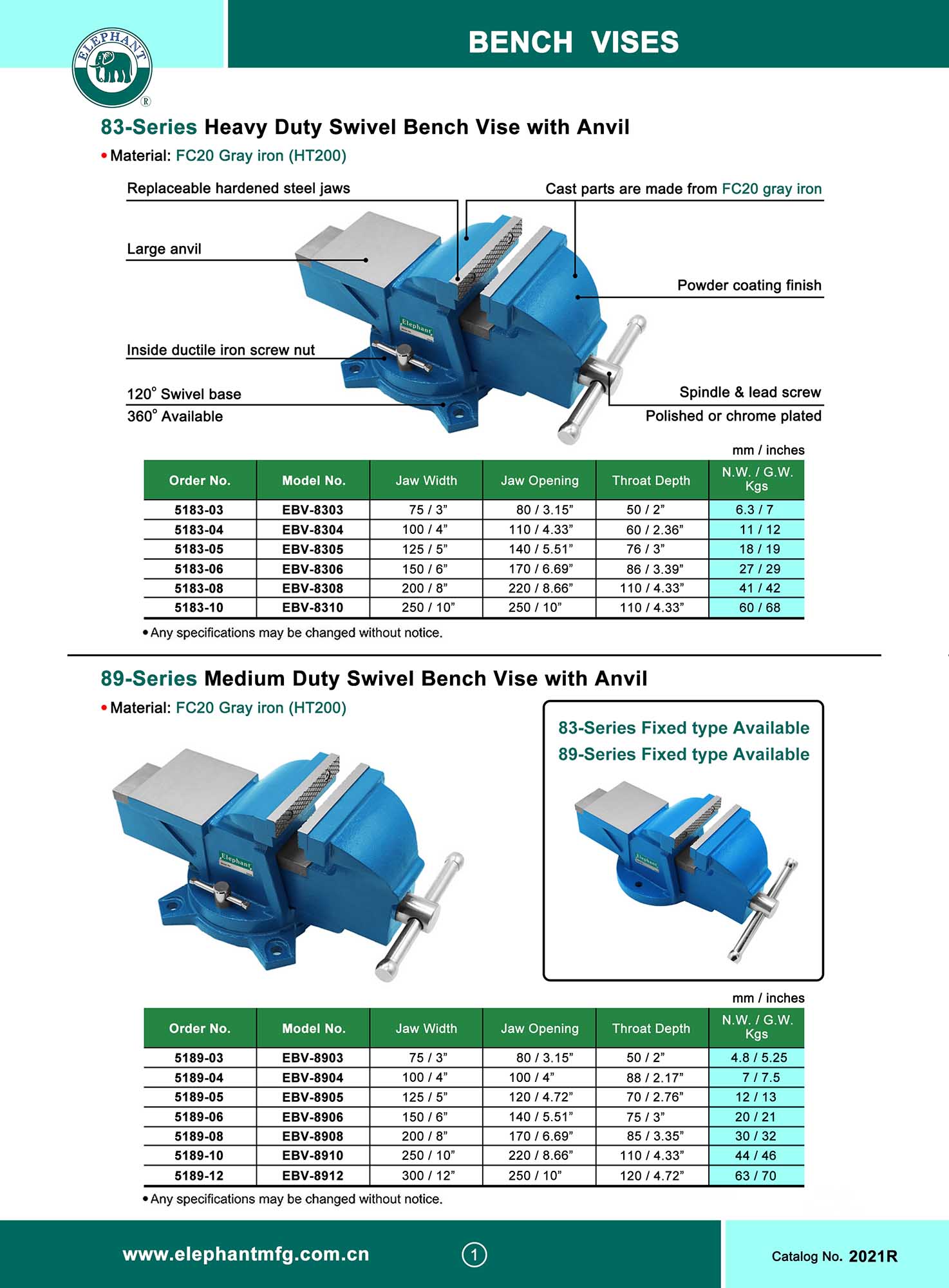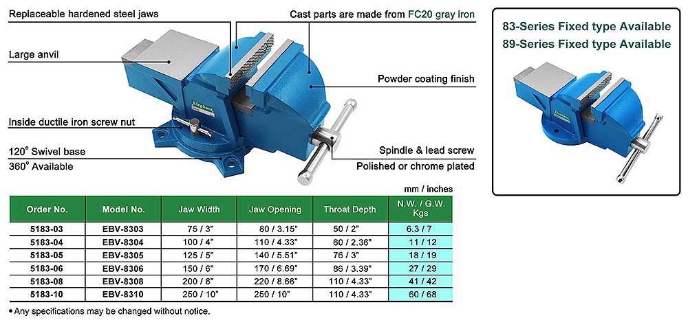 83-Series HEAVY DUTY SWIVEL BENCH VISE WITH ANVIL