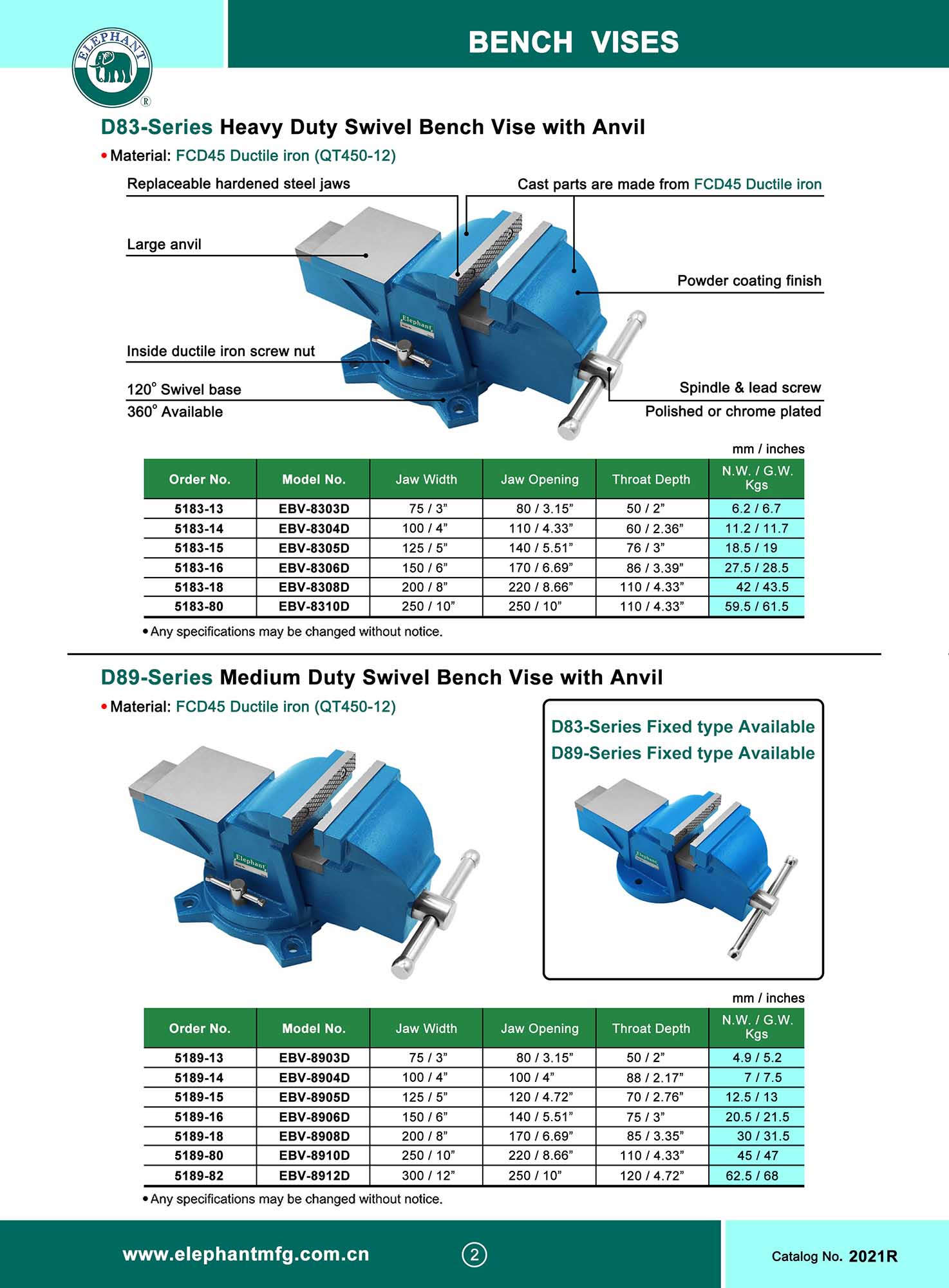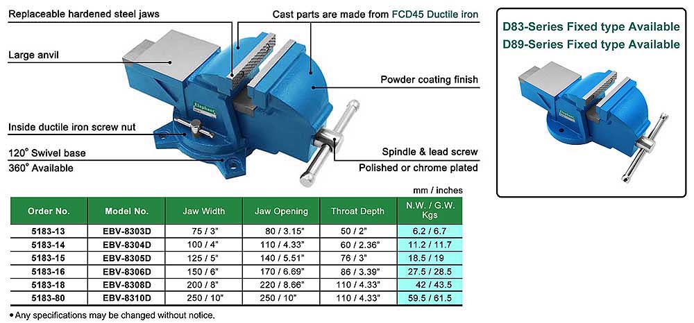 D83-Series HEAVY DUTY SWIVEL BENCH VISE WITH ANVIL