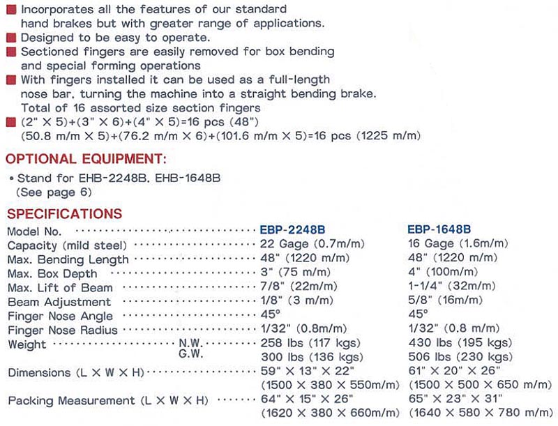 BENCH TYPE BOX AND PAN BRAKES