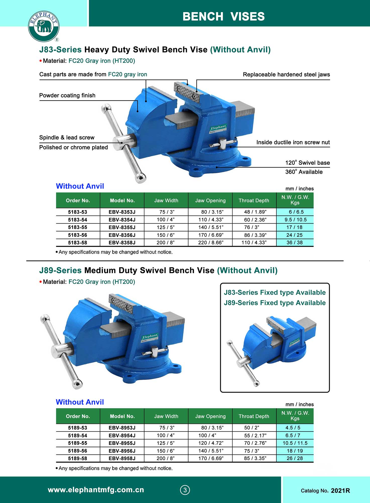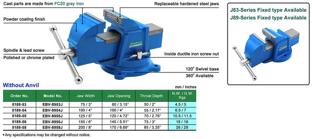 J89-Series MEDIUM DUTY SWIVEL BENCH VISE WITHOUT ANVIL