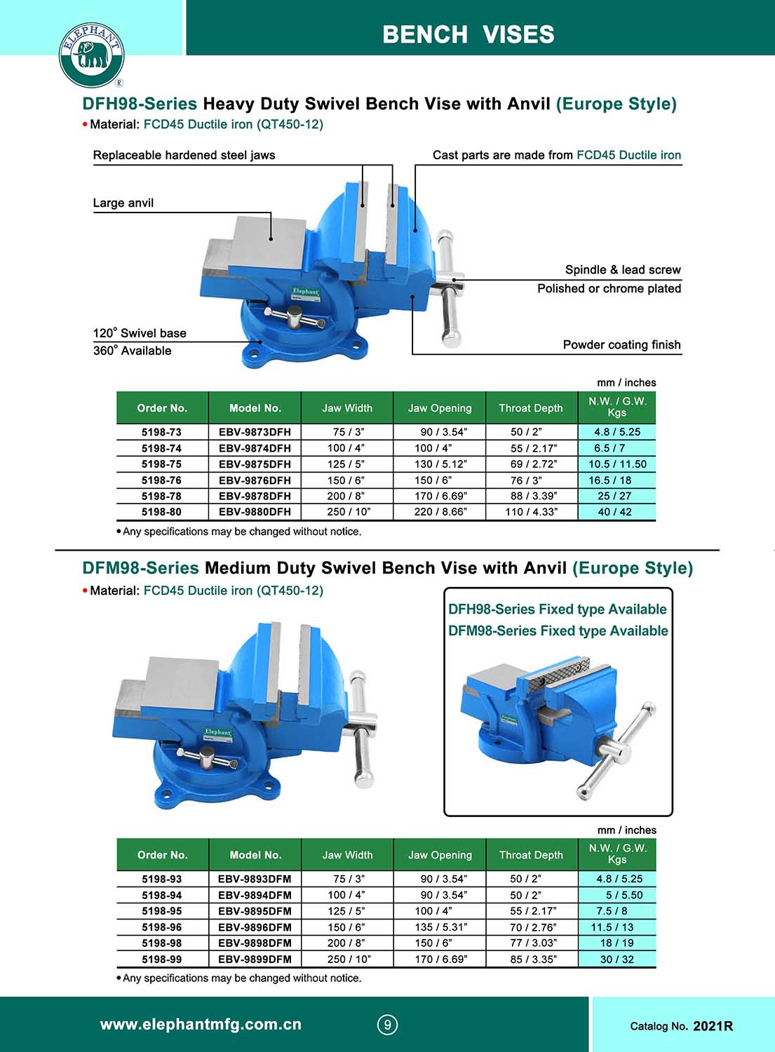 DFM98-Series MEDIUM DUTY SWIVEL BENCH VISE WITH ANVIL (EUROPE STYLE)