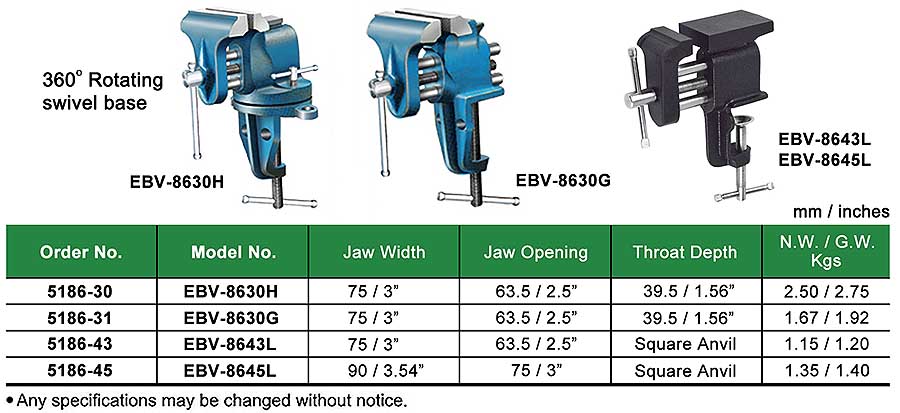 86-Series GUIDE-BAR type CLAMP-ON TABLE VISE WITH ANVIL