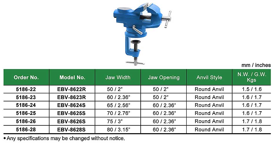 86-Series ECONOMIC CLAMP-ON TABLE VISE WITH ROUND ANVIL