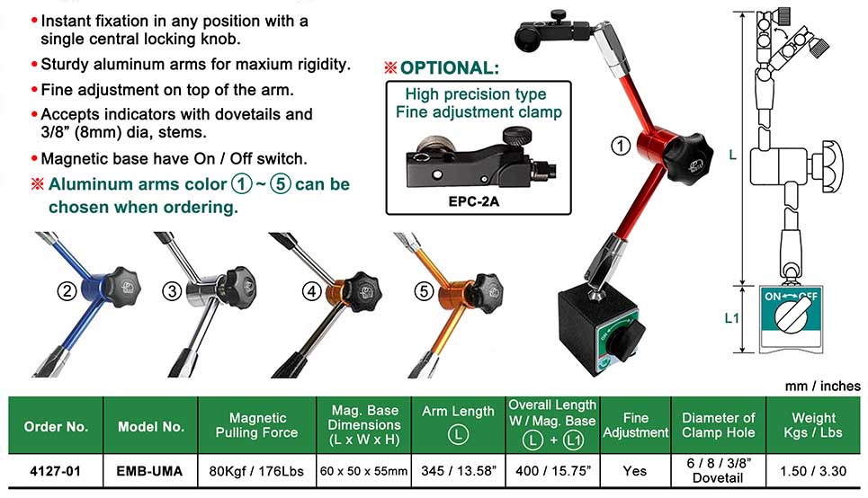 A-type UNIVERSAL ARM MAGNETIC BASE INDICATOR HOLDERS W/Fine Adj