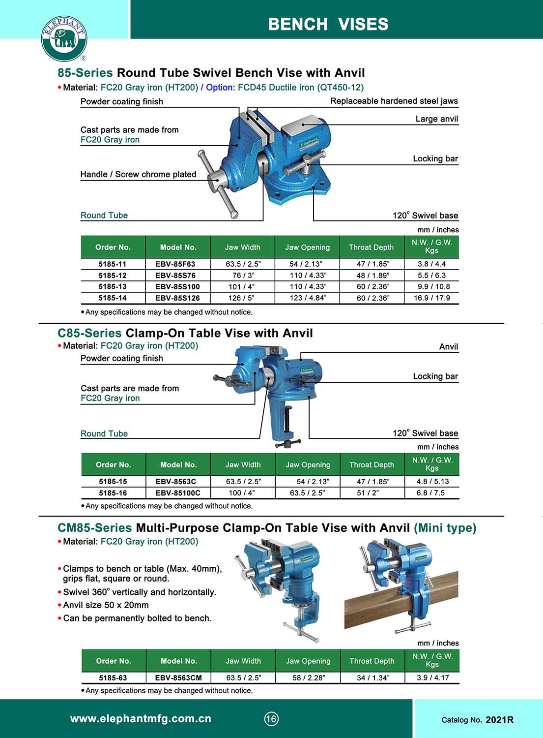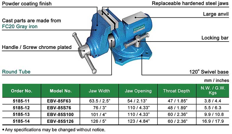 85-Series ROUND TUBE SWIVEL BENCH VISE WITH ANVIL