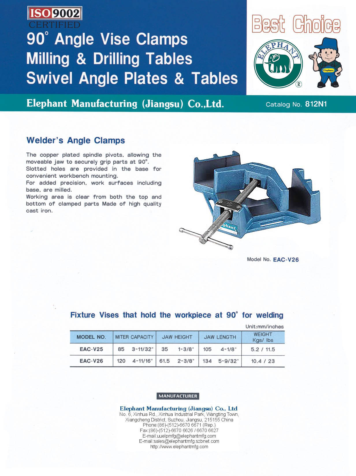 • The copper plated spindle pivots, allowing the moveable jaw to securely grip parts at 90.