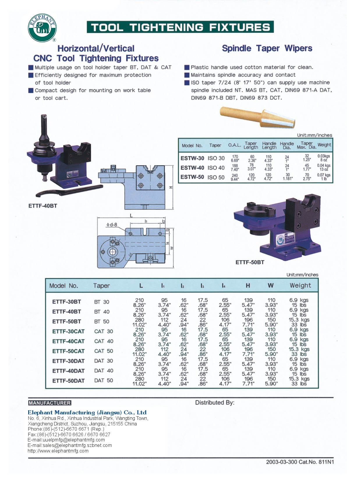 • ISO taper 7/24 (8  17’  50") can supply use machine spindle     included NT, MAS BT, CAT, DIN69 871-A DAT, DIN69 871-B DBT, DIN69 873 DCT.